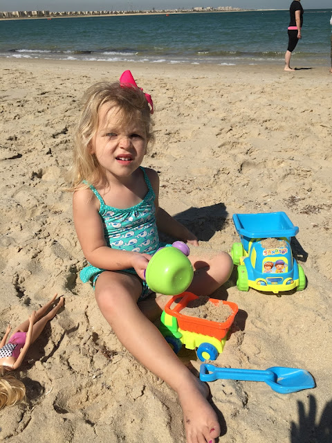 Claire's playschool had a big beach party! She loves the beach!